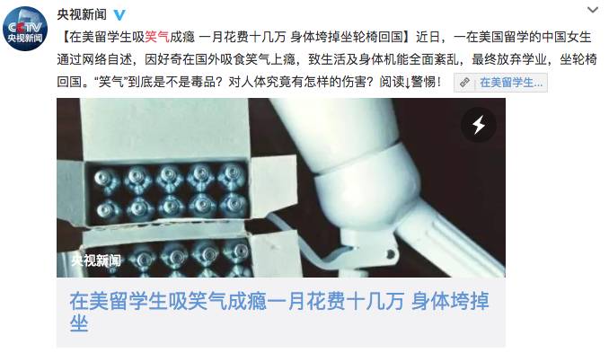 近日,一封題為《最終我坐著輪椅被推出首都國際機(jī)場》的公開信,披露了一位中國女生因吸食笑氣不得不放棄學(xué)歷的經(jīng)歷,引起網(wǎng)絡(luò)熱議。