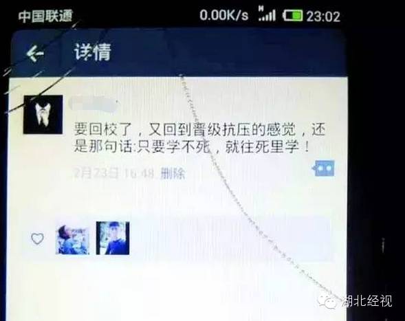昨日的午后,陽光暖暖的,小草剛剛發(fā)出嫩芽,桃花已經(jīng)含苞。一名高三女生縱身跳到窗外,結(jié)束了年輕的生命,留下的是家人的悲痛和親朋的無盡惋惜。 沈陽女孩晨風(fēng)(化名)家住皇姑區(qū)某小區(qū),不幸發(fā)生在昨日下午1時,晨風(fēng)趁母親不注意從自家12樓陽臺窗戶跳了下去。雖然120趕到現(xiàn)場進(jìn)行了搶救,但還是沒能挽回她的生命。 女孩的母親悲痛欲絕,摟著女兒身體放聲痛哭,哭得全身癱軟,別人想扶都扶不起來。 女孩的爺爺趕到現(xiàn)場,看到孫女已經(jīng)被一塊白布覆蓋,一言未發(fā)當(dāng)即跌倒在地昏了過去。小區(qū)居民看著也不禁落淚。 不幸發(fā)生時,女孩的父親還在上班,物業(yè)人員打電話通知他家里發(fā)生點(diǎn)事兒,叫他回家,但一切都已經(jīng)晚了。 “哎,太可惜了!毙^(qū)內(nèi)一位大娘不住感嘆。她告訴記者,晨風(fēng)今年17歲,是沈陽市某高中高三學(xué)生,是個非常好的女孩。 “聽說女孩學(xué)習(xí)很好,但最近有一次考試不太理想,可能心理受到挫折!币晃痪用癫聹y。 據(jù)周圍鄰居講述,晨風(fēng)最近情緒不太好,家里人也知道,母親還帶她去看過病,家里人一直特意看著她。昨日中午,母親在廚房做飯,女孩突然從南陽臺跳了下去。 昨日下午,警方確定女孩是自殺,女孩遺體被拉走。 事實(shí)上,近年來因為孩子自殺或離家出走的事件時有發(fā)生: 安徽六安17歲少年陳家煒卻在開學(xué)的前一天離家出走了。好在經(jīng)過六天的努力,合肥警方在一家工地附近,找到了陳家煒。 讓人心酸的是,離家出走的陳家煒卻留下了一封讓人讀來心酸的“絕筆信”: 爸媽,沒想到現(xiàn)在才寫好這東西……我其實(shí)已經(jīng)計劃好了很久的……我死后,就不要再去煩其他人了,我的死只和我個人有關(guān)……我死的時候,盡量保持腎的完整,賣掉后應(yīng)該值些錢…… 七天,就七天,我就可以脫離了。 總之就這樣,下輩子,不做窮人家的孩子! 陜西吳堡縣女生小玥因為與父母吵架,選擇溺水自盡。 去年4月,南京一名年僅14歲的初中女生突然從12樓墜下,送到醫(yī)院后,經(jīng)過搶救不幸身亡。據(jù)了解,南京某中學(xué)讀初一。墜樓原因可能是和壓力太大有關(guān)。 山西省晉城市龍鳳苑小區(qū)(經(jīng)濟(jì)適用房)7號樓3單元1403室,一10歲男孩兒跳樓自殺,自殺原因系其寫作業(yè)被母親訓(xùn)斥后,在半夜稿紙上寫遺書后跳樓,該男孩兒后因搶救無效死亡。 武漢市一15歲學(xué)霸女孩跳樓身亡,從18樓家中跳下當(dāng)場殞命。據(jù)了解,女孩成績一直很好,疑因去年期末考試不理想,離目標(biāo)差幾分想不開,產(chǎn)生極端行為自殺。 江蘇省連云港東海中央花園小區(qū)內(nèi),一16歲學(xué)生跳樓身亡。據(jù)圍觀者講訴:孩子跳樓原因疑似是因為學(xué)習(xí)上的壓力太大,導(dǎo)致一時想不開,有了輕生的念頭。 家住成都錦江區(qū)蓮桂西路168號一小區(qū)的13歲女孩婷婷(化名)被發(fā)現(xiàn)墜亡在小區(qū)2樓平臺,疑似自己從16樓家中跳下。而今天,正好是婷婷所在學(xué)校報到的日子,有婷婷家屬懷疑,是學(xué)校學(xué)業(yè)壓力過大。 去年11月,深圳高三學(xué)生張文從學(xué)校5樓一躍而下,結(jié)束了年僅17歲的生命。這個在校表現(xiàn)良好,曾多次獲得“三好學(xué)生”、“德育標(biāo)兵”等稱號的優(yōu)秀學(xué)生在遺書中寫道,“我感覺壓力太大,不想讀書”。父親稱,兒子去世前曾多次熬夜做作業(yè)到凌晨兩點(diǎn),升入高三后更是“忙到?jīng)]有休息日”。 每一個孩子自殺的背后, 不止是一條生命的終結(jié), 更是一個家庭的破碎。 表面上看,這些選擇自殺或者離家出走的孩子有著各種各樣的理由,但是如果深究起來,在巨大的壓力面前,孩子缺乏正確有效的心理疏導(dǎo),或許才是關(guān)鍵。 現(xiàn)在隨著社會的發(fā)展,孩子的壓力也越來越大,雖然輕生原因與學(xué)業(yè)壓力有關(guān),不過專家表示,學(xué)業(yè)可能是重要因素,但絕不是唯一的因素,有可能是多方面的因素導(dǎo)致最后精神崩潰。 當(dāng)孩子出現(xiàn)這些心理問題的時候,作為家長一定要引起重視,采取一些有效的措施來化解孩子遇到的壓力。 1、找到壓力源 感到了壓力,那一定是某件事情讓自己產(chǎn)生了壓力,即壓力的來源。首先應(yīng)該明確壓力源來自于哪些方面,是作業(yè)沒有按時完成,還是上課的知識沒有學(xué)懂,又或是要考試的內(nèi)容還未明白,亦或周末的補(bǔ)習(xí)培訓(xùn)讓身心吃不消。 2、端正目標(biāo)和期待。 壓力的產(chǎn)生往往多數(shù)是與過高的期待而緊密聯(lián)系的,這種期待一方面可能來自于家長和老師,另一方面可能來自于學(xué)生自己。根據(jù)自己的能力制定出合理的學(xué)習(xí)目標(biāo),不要奢求太高。 3、學(xué)會合理宣泄。 雖然家長們也都知道學(xué)習(xí)很苦,但面對學(xué)習(xí)考試壓力大,多數(shù)家長都會選擇和孩子說“再忍忍,也就辛苦個這三五年,上了大學(xué)就好了!币环矫,用壓抑或者忽視來對待過大的壓力是最不可取的方法,壓力,長期積壓后的爆發(fā)往往很可能更加無法收拾。 另一方面,父母這樣教育的言下之意會讓孩子覺得學(xué)習(xí)也就是這幾年的事情,而大學(xué)之后就可以不用這么辛苦地再去學(xué)習(xí)了。因