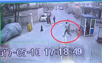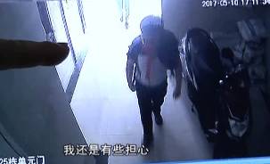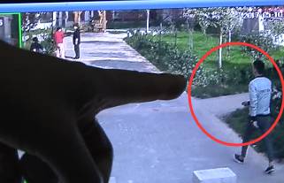 監(jiān)控畫面上顯示,大約在17點18分左右,那名年輕男子匆忙跑出小區(qū)并時不時地回頭觀望。
