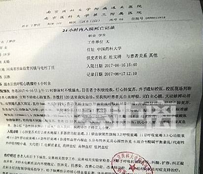 6月17日上午11點(diǎn)半,醫(yī)院宣告丁某經(jīng)搶救無(wú)效去世。據(jù)家屬介紹,丁某是河南駐馬店人,在藥科大學(xué)讀中藥學(xué)專業(yè),目前在上大一。