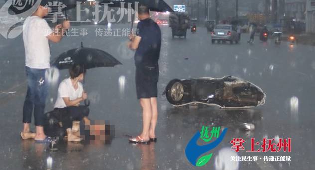 接到報(bào)警的直屬三大隊(duì)交警、120急救人員趕到現(xiàn)場(chǎng),撫州直屬三大隊(duì)事故中隊(duì)交警饒李良告訴我們:這兩輪助力車(chē)司機(jī)當(dāng)時(shí)躺在地上,頭部出了好多血,當(dāng)時(shí)有群眾為他撐傘,救護(hù)車(chē)達(dá)到之后對(duì)他現(xiàn)場(chǎng)進(jìn)行搶救了,就發(fā)現(xiàn)他沒(méi)有心跳,到達(dá)現(xiàn)場(chǎng)的醫(yī)生就宣布他當(dāng)場(chǎng)死亡了。