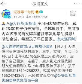 于此同時,在線上,有關孩子走失的信息進一步傳播,莊河吧、新浪微博,關心關注孩子動向的網(wǎng)民越來越多。