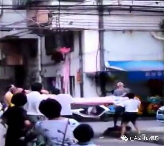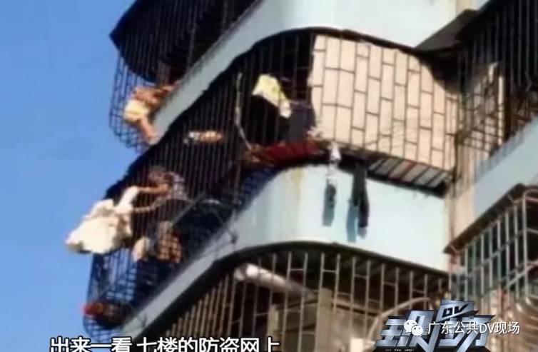 與此同時(shí),男童的父母聞?dòng)嵰糙s到了現(xiàn)場(chǎng),發(fā)現(xiàn)自己孩子被防盜網(wǎng)卡住,馬上跑上樓,母親來(lái)到六樓鄰居家的陽(yáng)臺(tái),伸出一張白布,試圖接住孩子,而父親則回到家中進(jìn)行營(yíng)救