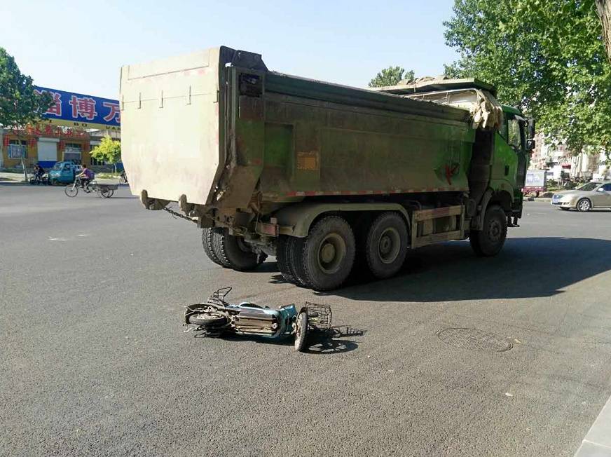今天7:00許,在張店洪溝路和東四路交叉路口發(fā)生一起交通事故,一輛大貨車在路口轉彎時將一輛電動車刮倒,騎電動市民不幸身亡。