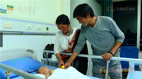 今年6月1號(hào),若爾蓋縣占哇鄉(xiāng)夏德村村民奪機(jī)塔、阿素夫妻像往常一樣,早早地就出門(mén)干活兒了,因?yàn)閾?dān)心獨(dú)自留在家中僅4個(gè)月大的女兒康卓措受冷,夫妻倆將孩子放在了家里的火爐旁,結(jié)果造成女?huà)胗彝却竺娣e燙傷。盡管經(jīng)過(guò)當(dāng)?shù)匦l(wèi)生院和縣人民醫(yī)院先后救治,但除了花去巨額醫(yī)療費(fèi)用以外收效甚微。德陽(yáng)市對(duì)口幫扶若爾蓋縣前方指揮部在9月初了解到小康卓錯(cuò)的不幸遭遇后,立即聯(lián)系了德陽(yáng)市人民醫(yī)院,決定對(duì)其進(jìn)行免費(fèi)治療。