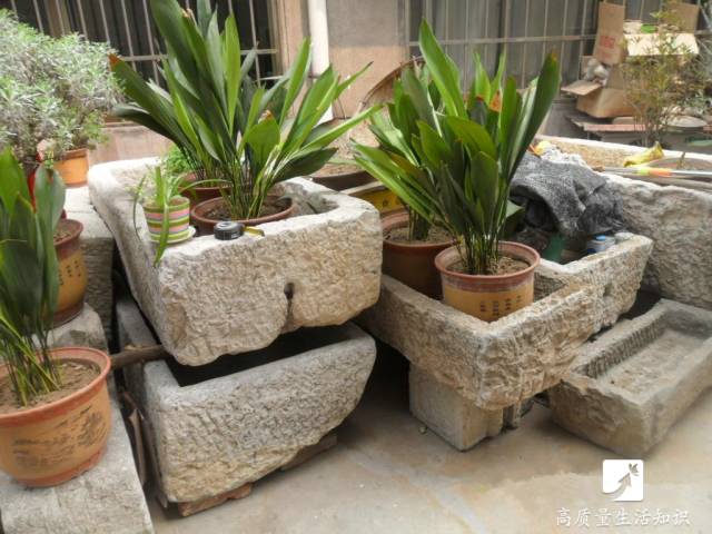 城里一些高檔別墅庭院都會請一個青石牛槽放家里