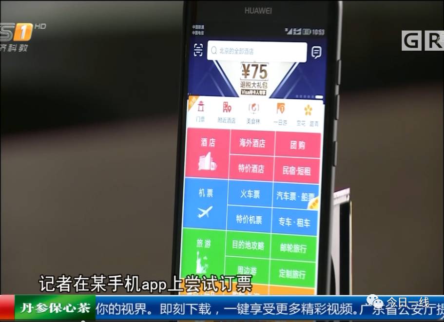 記者在某手機app上嘗試訂票,選定一趟廣州飛往北京的航班。原本1910元一張的機票,卻需要繳付2053的總費用。