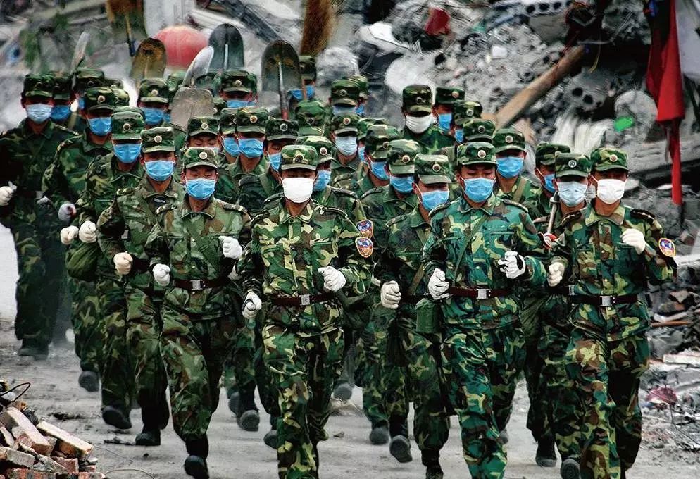 △ 四川北川,武警戰(zhàn)士用自己的血肉之軀在廢墟中營救幸存者。