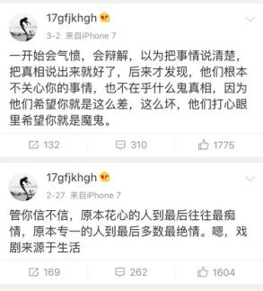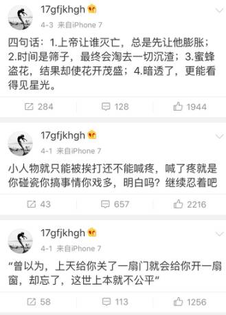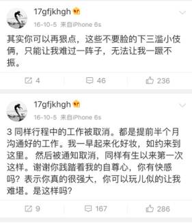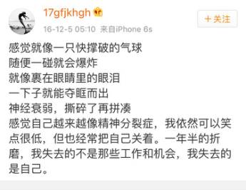 發(fā)布的內(nèi)容影射出自己被某人下封殺令,錯(cuò)失了好多次工作機(jī)會(huì),甚至是工作被放鴿子。
