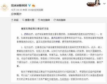 目前,范冰冰和李晨還未就此事做出回應(yīng),但范冰冰的粉絲團(tuán)看不下去自己家愛豆被黑,于是站了出來撐自家愛豆,更是用“被害妄想癥的主要治療方法”實(shí)力回應(yīng)。