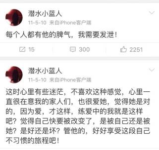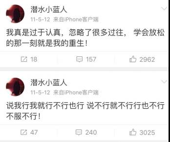 被曝光疑似有小號(hào)的還有張杰,微博上負(fù)能量滿滿。