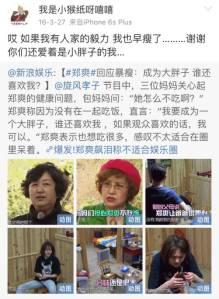 她還曾轉(zhuǎn)發(fā)了一條關(guān)于鄭爽暴瘦的微博說“如果我有人家的毅力,我也早瘦了”。