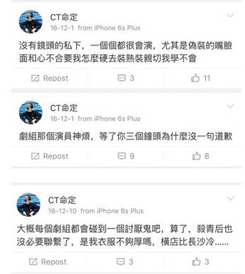 在這個(gè)賬號(hào)里,博主表達(dá)了自己在拍戲過程中的無奈。