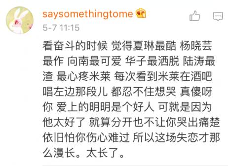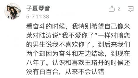 《奮斗》是我的一個(gè)開始,通過這部戲這個(gè)角色我一直在找尋自己,感謝,感謝你們還記得我曾經(jīng)的角色。