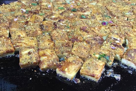 每一塊豆腐都煎至兩面金黃,放上各種調(diào)料,和調(diào)和的汁,吃完滿口余香。