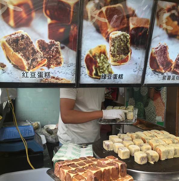 分三種口味:紅豆、綠豆、紫薯,香甜軟糯,看著就好想吃。這個(gè)是按斤賣的,一個(gè)約3元錢。