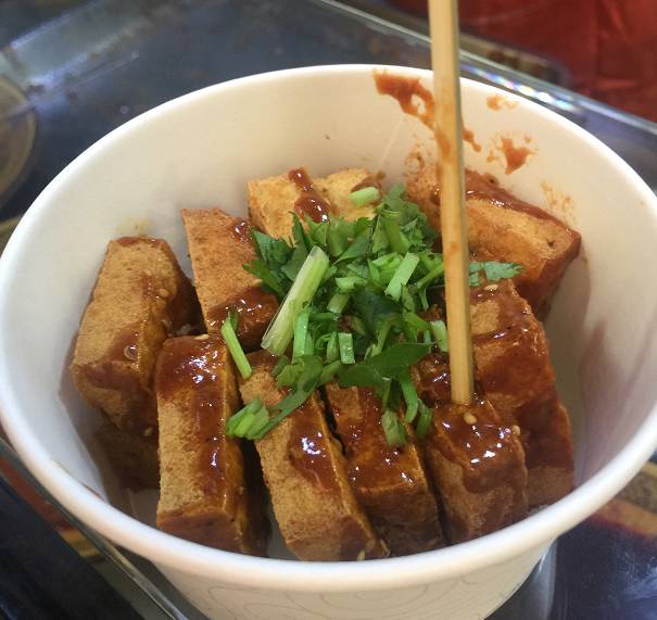 這家臭豆腐口味真的很全呀,原味、五香、麻辣、椒汁……