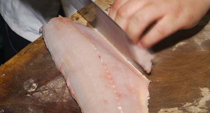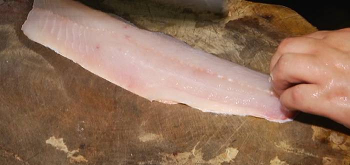 第一步,要掌握三個小訣竅:切一個小口固定魚肉,用刮而不用剁,順著魚刺的方向刮。