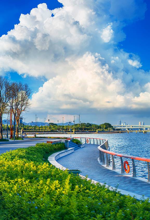 深圳灣濱海休閑帶西段,全長共6.6公里,分為D、E、F、G四段建設,整個項目的設計理念為“生態(tài)、簡約、實用、便民”,段與段之間,從歷史人文到生態(tài)景觀都體現(xiàn)出不同特色,讓人仿佛置身一幅優(yōu)美的畫卷之中。